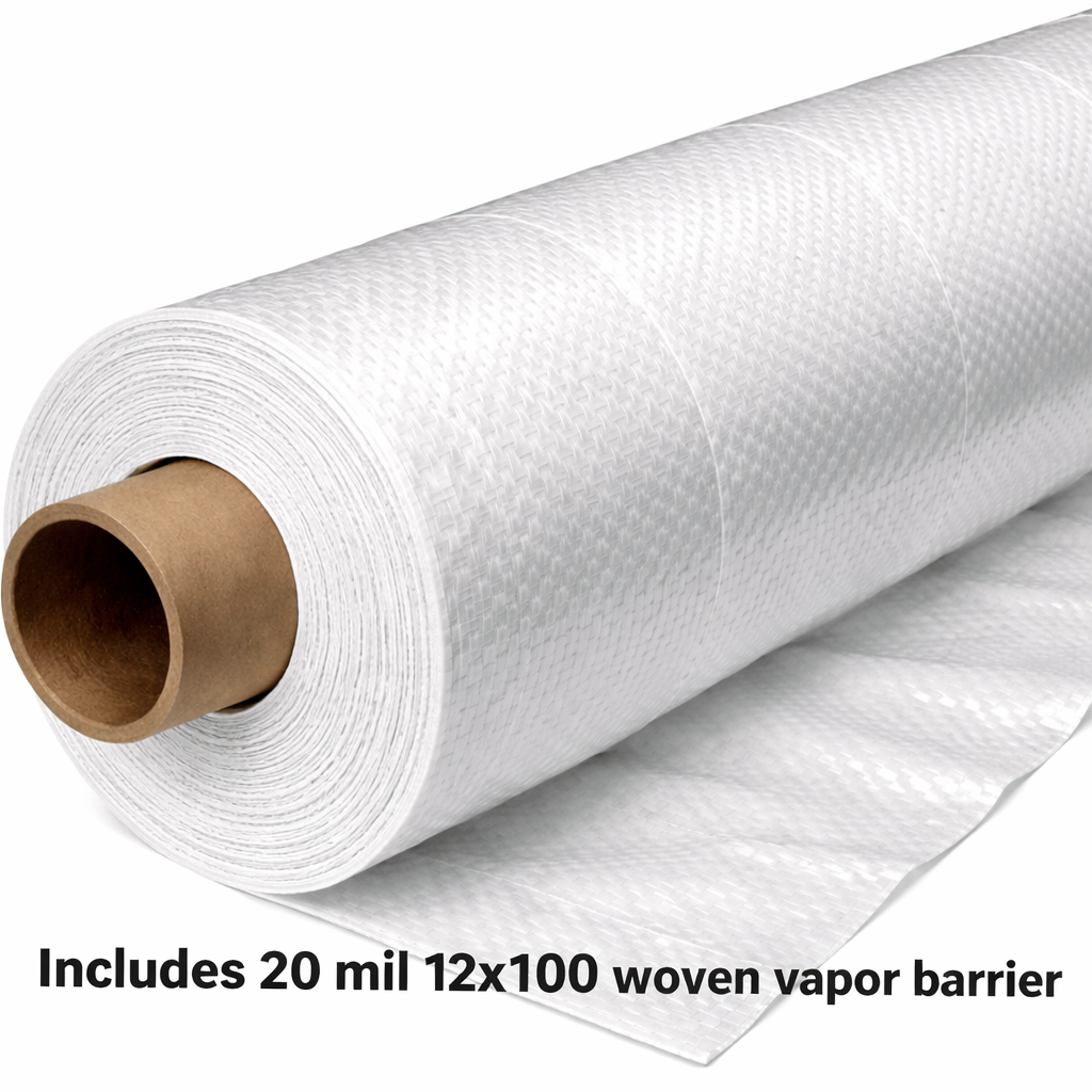 1× 20 Mil Woven Vapor Barrier – Ground coverage (1,200 sq. ft.)